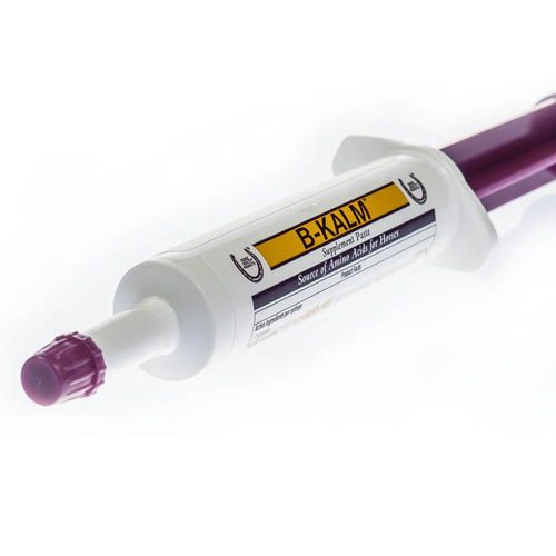 Natuurlijk kalmeringsmiddel voor paarden in pastavorm B-Kalm. Helpt dieren te kalmeren voor de wedstrijd of tijdens het transport.