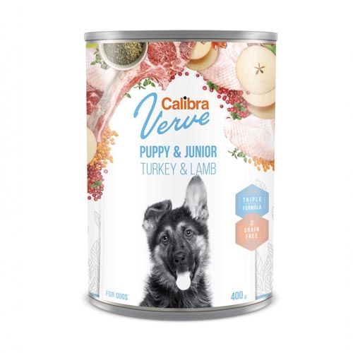 Calibra Dog GF Verve Junior Kalkoen & Lam (blik) 6 x 400 gram