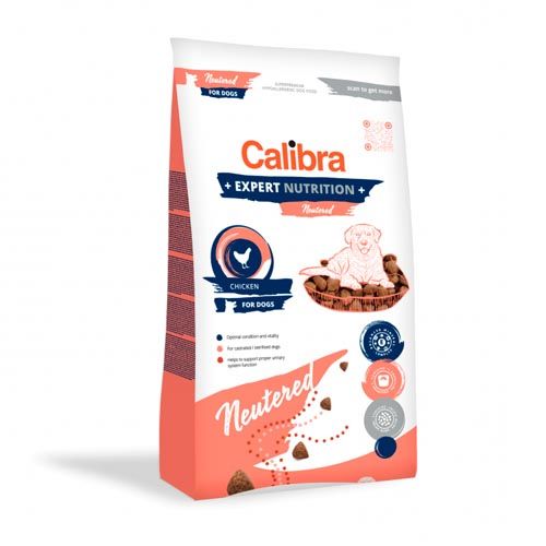 Calibra Expert Nutrition Neutered is een volledige voeding voor honden met één bron aan eiwitten (kip) en één bron aan koolhydraten (rijst). Recept speciaal ontwikkeld voor gesteriliseerde en gecastreerde huisdieren.