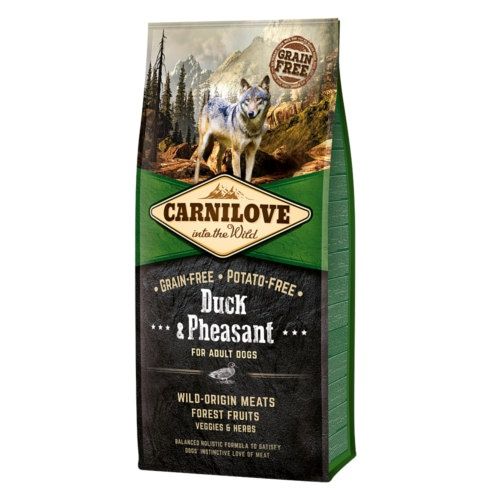 Carnilove Adult Duck & Pheasant droogvoer is een complete voeding voor volwassen honden van alle rassen, samengesteld zonder granen en aardappelen.