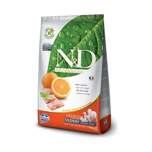 Farmina N&D Grain Free Ocean Herring & Orange hondenvoeding biedt complete voeding voor volwassen honden.