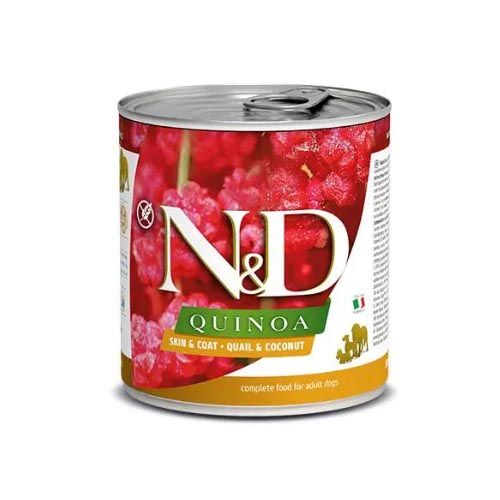 Farmina N&D Quinoa Skin Coat natvoer voor honden met haring en kokos is een complete dieetvoeding, aanbevolen voor het verminderen van intoleranties voor ingrediënten en voedingsstoffen.