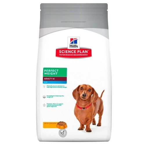 Hill´s Perfect Weight Canine Mini is samengesteld met een laag vetgehalte, waardoor het de perfecte voeding is voor volwassen honden van kleine rassen die de neiging hebben om aan te komen of die licht overgewicht hebben. Bovendien zal de heerlijke kipsmaak je huisdier verrukken. Dierenartsen over de hele wereld bevelen Hill´s Science Plan Perfect Weight Canine Mini hondenvoer aan. Het is ontworpen voor volwassen honden (1 tot 6 jaar) van kleine rassen die licht overgewicht hebben of de neiging hebben om aan te komen. Ook geschikt voor gesteriliseerde honden.