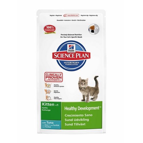 Hill´s Feline Kitten TonijnHill´s™ Science Plan™ Kitten Healthy Growth with Tuna is samengesteld ter ondersteuning van een gezond immuunsysteem en een goede spijsvertering; bevat antioxidanten en optimale gehaltes aan DHA uit visolie.Belangrijkste voordelenBevatantioxidanten ter ondersteuning van een gezond immuunsysteem.Biedt een ideale balans van natrium en fosfor voor een goede gezondheid.Gemaakt met hoogwaardige ingrediënten voor een gemakkelijke spijsvertering en een heerlijke smaak. Zwangere en zogende katten en katten kunnen normaal gesproken onbeperkte hoeveelheden voer krijgen, maar hieronder staat een richtlijn voor aanbevolen dagelijkse hoeveelheden. Deze doseringen zijn slechts een referentiepunt, aangezien de behoeften van dieren variëren.1 Pas de dagelijkse hoeveelheid voeding aan om een optimaal lichaamsgewicht te behouden.CATTLESciencePlanTM Kitten moet worden gevoerd vanaf het spenen tot de volwassenheid op de leeftijd van één jaar. Kittens kunnen normaal gesproken onbeperkte hoeveelheden Science PlanTM Kitten krijgen, hoewel de volgende richtlijn als referentie kan worden gebruikt, waarbij de dosis in 2-4 dagelijkse voedingen wordt verdeeld en wordt aangepast om een optimale lichaamsconditie te bereiken/behouden.