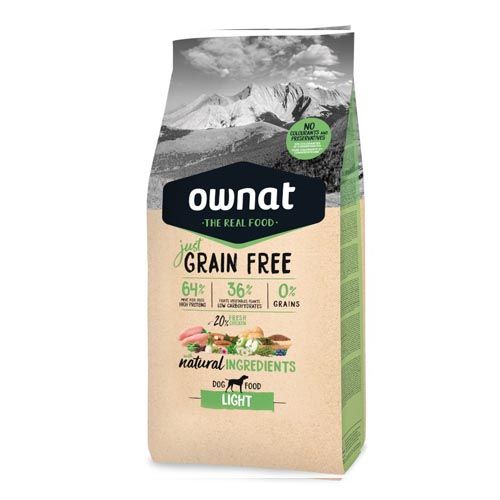 Ownat Just Grain Free Light Speciaal geschikt voor honden met een laag activiteitenniveau of neiging tot overgewicht. Het bevat een verlaagd vetgehalte om te helpen het ideale gewicht terug te krijgen en te behouden, terwijl het een hoog aandeel eiwitten van de hoogste kwaliteit bevat om te zorgen voor goed spierbehoud en een goede spiertonus.
