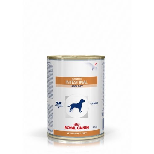 Royal Canin Dog Gastro Intestinal Low Fat (blik) is een natvoer met de laagste gehaltes aan vet en vezels (oplosbaar en onoplosbaar) die je kunt vinden, wat onze hond helpt om de fermentatie in de dikke darm te beperken en de smakelijkheid en opname van voedingsstoffen bevordert.