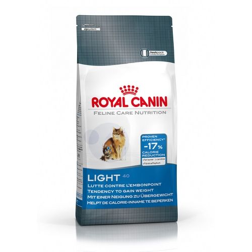 - Van de LIGHT 40 formule, rijk aan vezels en psyllium, is aangetoond dat deze de spontane consumptie van calorieën door de kat met 17% vermindert, terwijl de eetlust wordt gestild (in vergelijking met een hoogwaardige voeding met weinig calorieën - studie van Royal Canin, 2006). Bewezen doeltreffendheid bij exclusief gebruik van LIGHT 40).