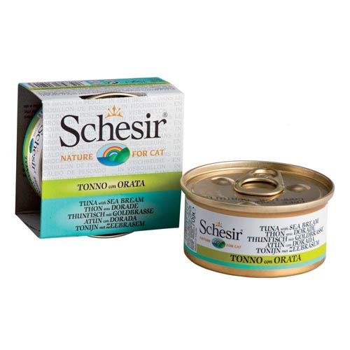 Schesir Kat Tonijn & Zeebrasem - Gestoofd in Bouillon (Blik)