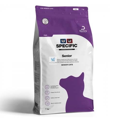 Tot de eigenschappen behoren ook de eliminatie van haarballen, waar de vezel voor zorgt, en de vermindering van de productie van onwelriekende gassen en de geur van uitwerpselen, met yucca en Odor-control. Specific Feline FGD Senior is zeer licht verteerbaar. Dit zorgt voor een uitstekende opname en benutting van voedingsstoffen, waardoor er minder uitwerpselen en voer wordt verbruikt. Het versterkt ook de spijsvertering van je kat. Fructo-oligosachariden en bietenpulp zijn fermenteerbare vezels die de groei van nuttige bacteriën in de darmen stimuleren.