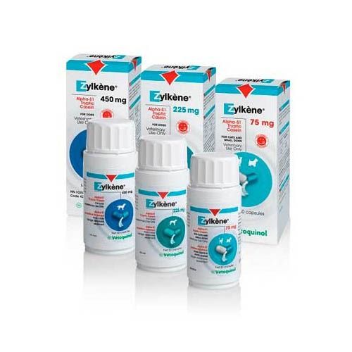 | Ingredientes | Alfa-S1 75 mg, maltodextrina 170 mg y estearato de magnesio 10 mg. (Zylkene 75 mg). Alfa-S1 225 mg, maltodextrina 225 mg y estearato de magnesio 5 mg. (Zylkene 225 mg). Alfa-S1 450 mg, maltodextrina 450 mg y estearato de magnesio 13,5 mg. (Zylkene 450 mg). |